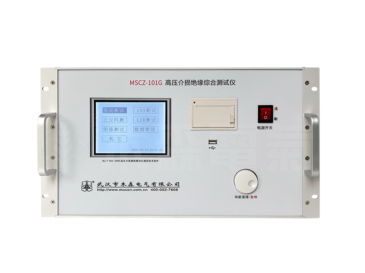 介損絕緣試驗可以有效地發現電器設備絕緣的整體受潮劣化變質,以及局部缺陷等,在電工制造、電氣設備安裝、交接和預防性試驗中都廣泛應用。MS-101G高壓介損測試儀采用變頻電源技術,利用單片機和電子技術進行自動頻率變換、模/數轉換和數據運算,達到抗干擾能力強、測試速度快、精度高、操作簡便的功能。變頻電源采用大功率開關電源,輸出單頻45Hz~65Hz及雙頻47.5Hz52.5Hz、45.0Hz55.0Hz、57.5Hz62.5Hz、55.0Hz65.0Hz純正弦波,自動加壓,可提供最高12kV的電壓;自動濾除50